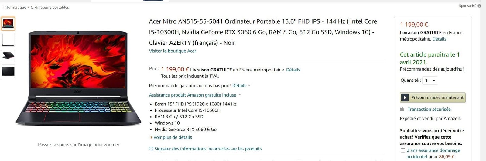 Another detail of great interest with the Acer Nitro AN515-55-5041 is that it was listed at a price of 1199 EUR, while its launch date was set for April 1.
