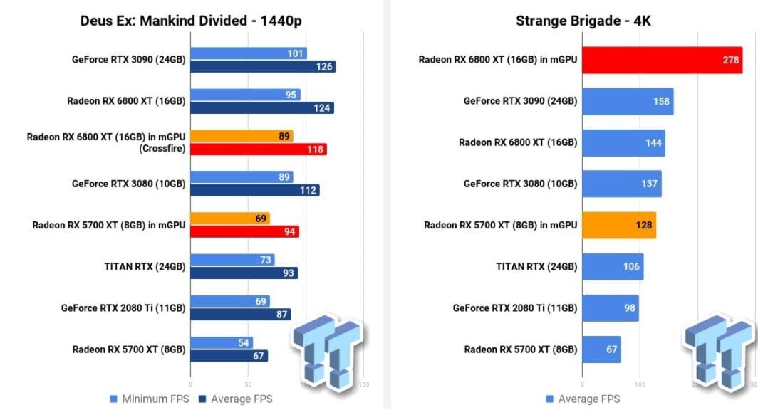 Benchmarks 2x AMD Radeon RX 6800 XT in Crossfire | |||||||||