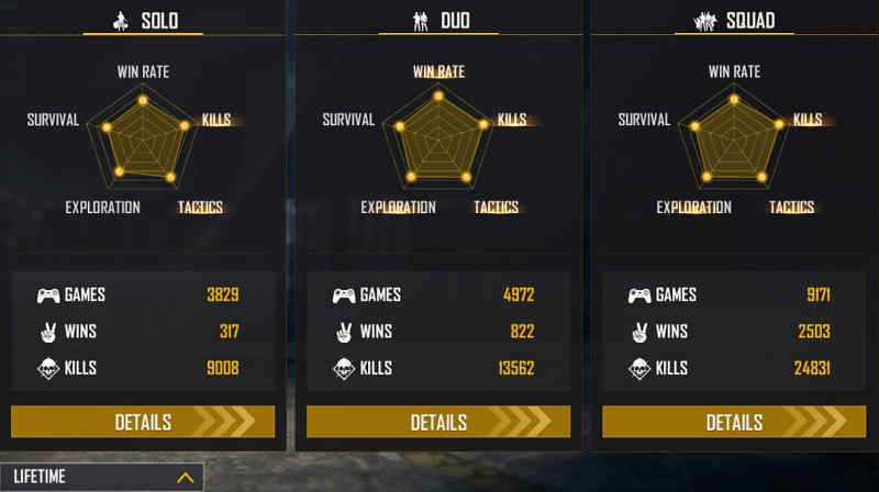 Finally, Desi Gamers has played 3829 solo games and has 317 victories for an 8.17 percent win rate. He has killed 9008 enemies with a kill-to-death ratio of 2.56.