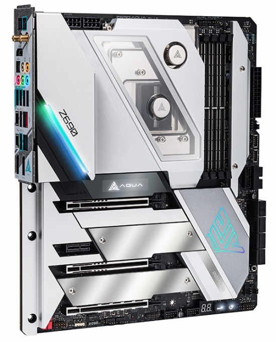 The key highlight of the new motherboard is the custom AQUA water cooling block, which is designed to dissipate the heat of the CPU, VRM as efficiently as possible. The ASRock Z690 AQUA motherboard also features an OLED display that provides a clear status of the motherboard. The display can also be configured from the BIOs to get a more user-friendly application.