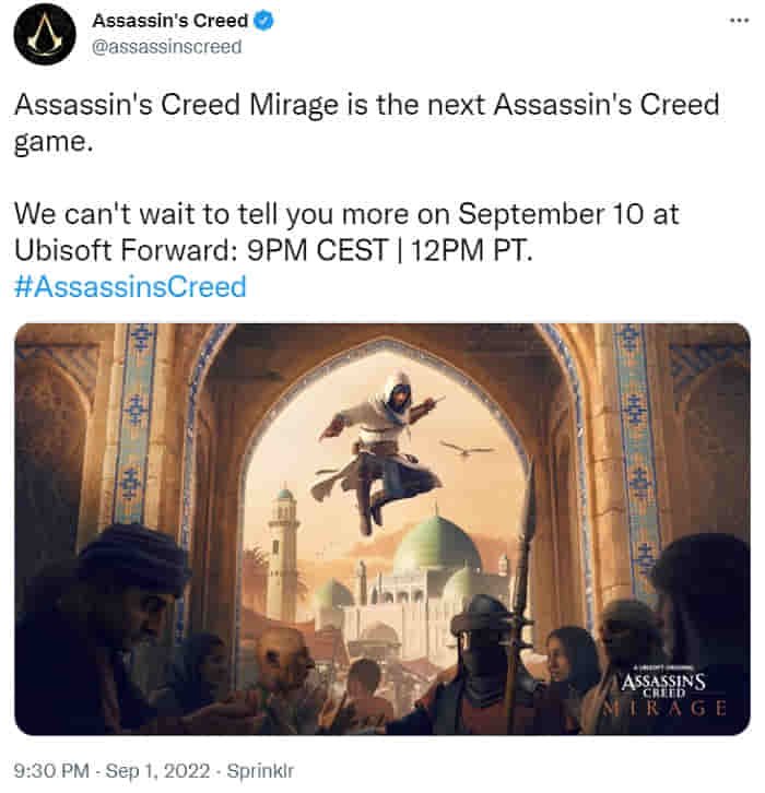 During the Ubisoft Forward event on September 10th at 3pm Eastern, 9am PT, U.S., the developer will reveal more details about Assassin’s Creed Mirage and other games in the series. The presentation will be broadcast live on YouTube, Twitch and the company’s website.