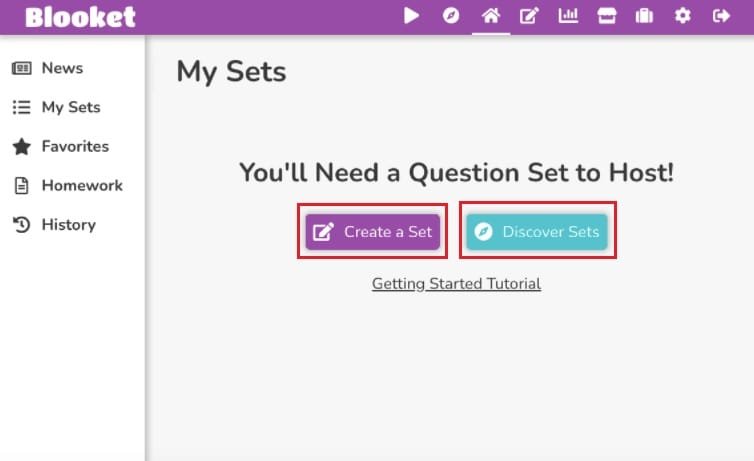 - On the left of the dashboard you can see recent news, question sets, favorited question sets, quests, and recently hosted games.