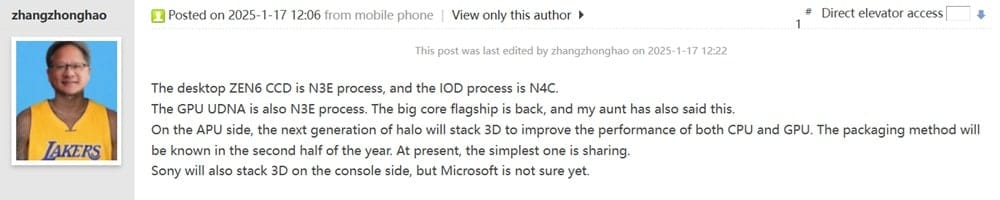 The PS6’s GPU is said to be a fork of AMD’s gfx13 architecture, previously known as RDNA 5 and now called UDNA. While specifics about the GPU’s size are unavailable, UDNA will likely incorporate cutting-edge features from AMD’s upcoming architecture. Another trusted hardware leaker, zhangzhonghao, added that the PS6 will utilize 3D Cache technology and confirmed AMD plans to release its UDNA GPUs and Zen 6 CPUs in 2026.