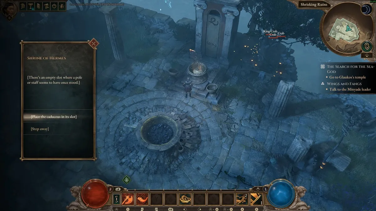In this quest, you find a staff called the Caduceus, place it in a shrine, and solve a riddle about the Greek god Hermes. Then, you lure a turtle to the shrine to finish a ritual. It’s a short quest but can be tricky if you don’t know where to go or what to do.